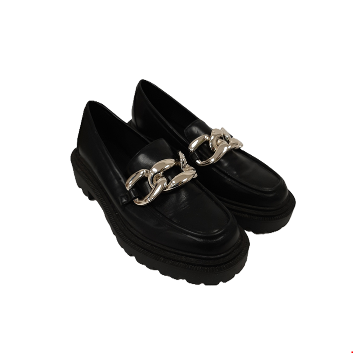 Step up your style with these Stradivarius Black Faux Leather Chunky Loafers, designed with a bold silhouette and finished with a statement chain buckle across the front. Perfect for adding edge to both casual and smart looks, they’re a versatile and on-trend footwear staple.