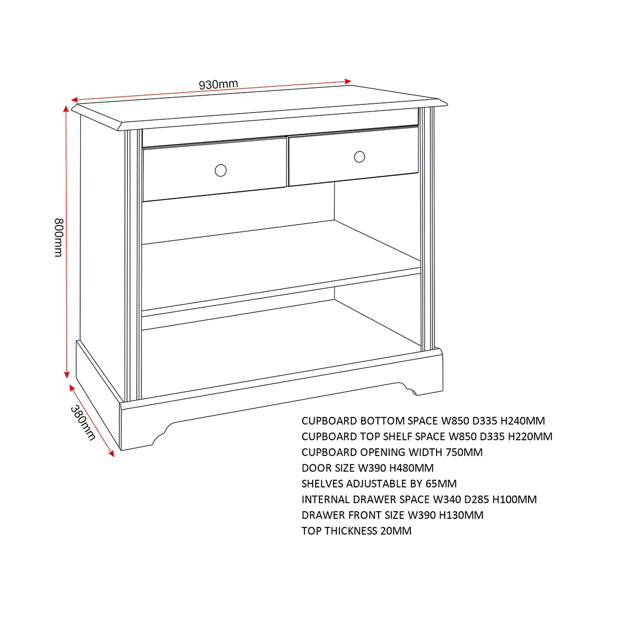 Assembled Sizes: Width: 93 x Depth: 38 x Height: 80 (cm)