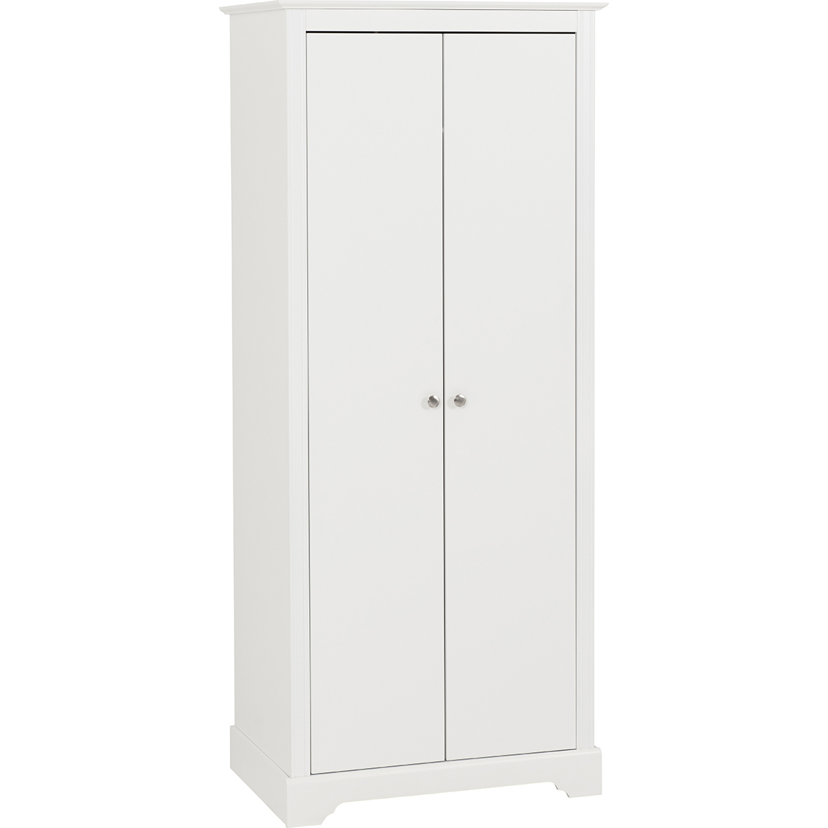 Transform your bedroom with this sleek and stylish Modern Elegance Two-Door Wardrobe, featuring a clean and contemporary design finished in a crisp white colour that complements any decor. Enjoy ample storage space with a combination of hanging space and shelving inside, perfect for organizing your clothes and accessories. The small, round metal handles with a polished silver finish add a subtle yet sophisticated contrast to the white exterior, while the flat panel design on the doors enhances the wardrobe’s modern and minimalist aesthetic. A slightly extended top cornice adds a touch of elegance and structure to the overall design, and the gently curved base provides a refined and balanced appearance. The versatile matte white finish blends seamlessly with various bedroom colour schemes and furniture styles, and the sturdy construction ensures stability and durability. Combining style and practicality, this Modern Elegance Two-Door Wardrobe is the perfect addition to any bedroom, offering a timeless design and ample storage space. Upgrade your bedroom today with this elegant and functional piece.