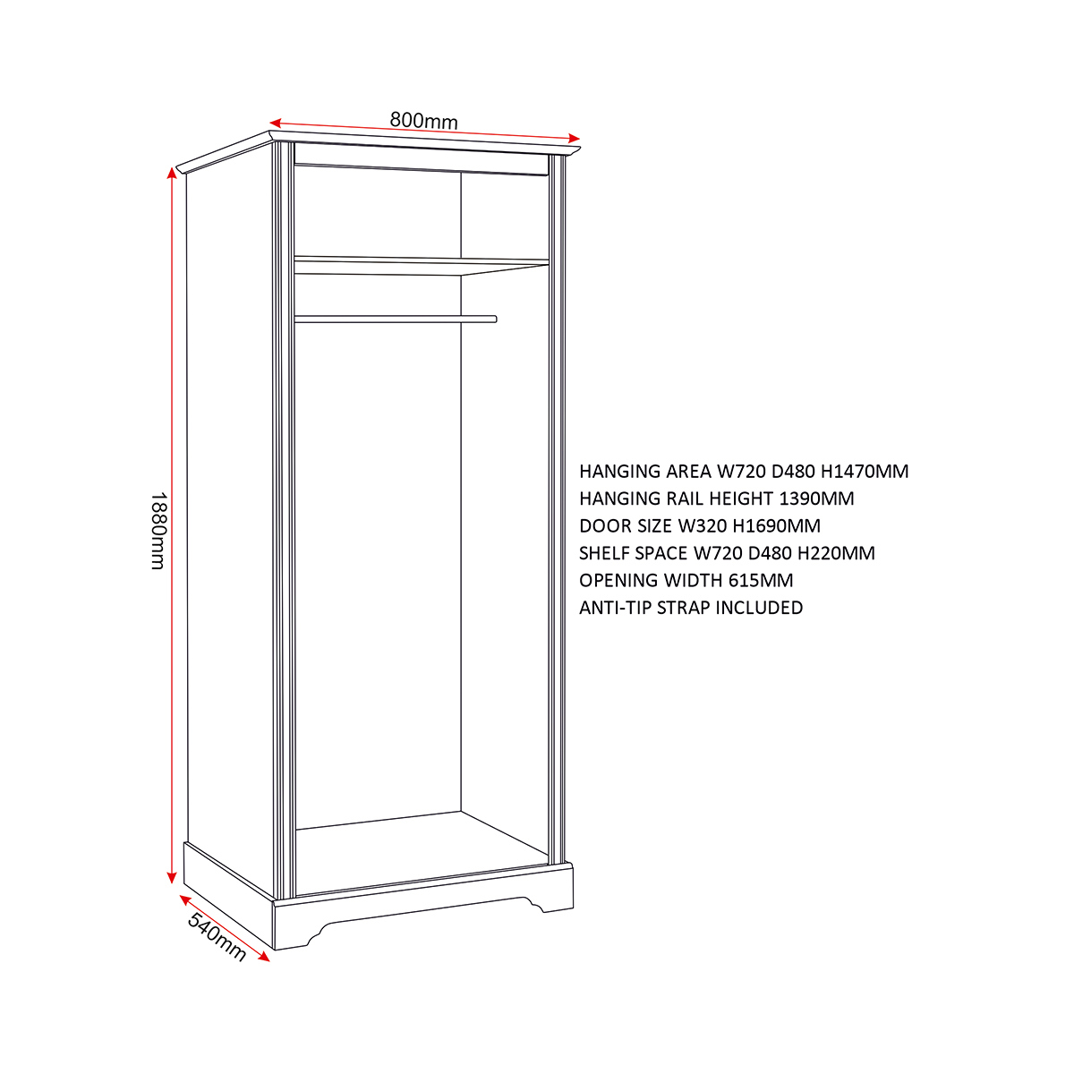 Assembled Dimensions: Width: 80 x Depth: 54 x Height: 188 (cm)