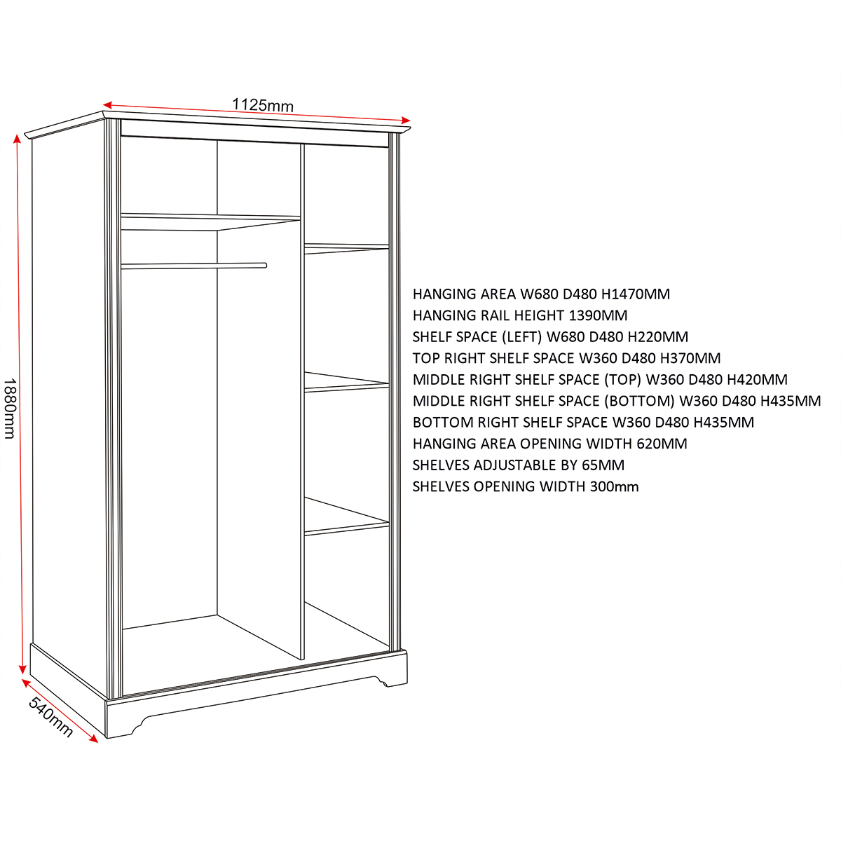 Assembled Dimensions: Width: 112.5 x Depth: 54 x Height: 188 (cm)