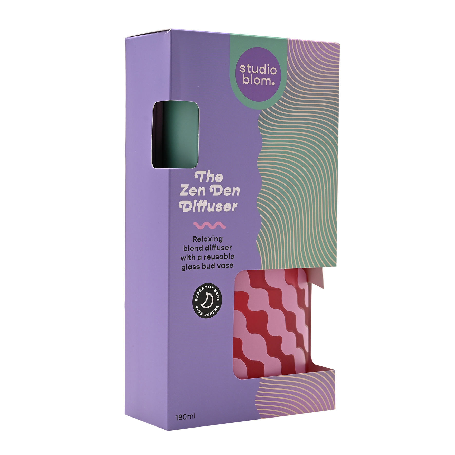 Create a calm and soothing atmosphere with the Studio Blom Dream Big Diffuser, designed to bring a sense of tranquillity to your everyday space. Featuring an abstract wave pattern and a beautifully reusable glass bottle, it adds a stylish touch to any shelf, desk or bedside table.