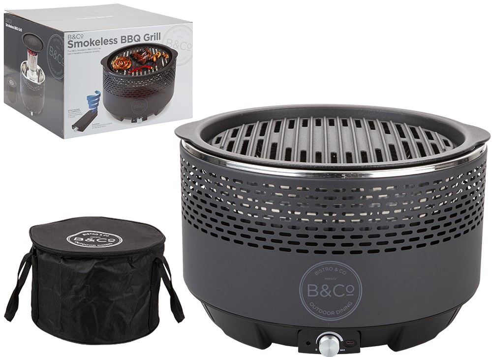 Ready to cook up a storm? Invite your clan over and get the party started with the B&Co Grey Smokeless Alfresco Grill. Perfect for feeding groups of up to six people, the grill heats in as little as 5 minutes. Smoke-free and always cool to the touch, it’s a brilliant alternative to traditional charcoal cooking. There’s even an air flow fan that can be powered with batteries or the USB charging port. Ultra portable and ultra sleek, this futuristic grill takes alfresco dining to the next level. Uses85% less charcoal than a traditional grill