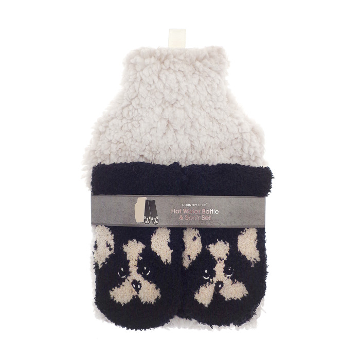 Supersoft Dog Design Hot Water Bottle and Socks Cosy Gift Set