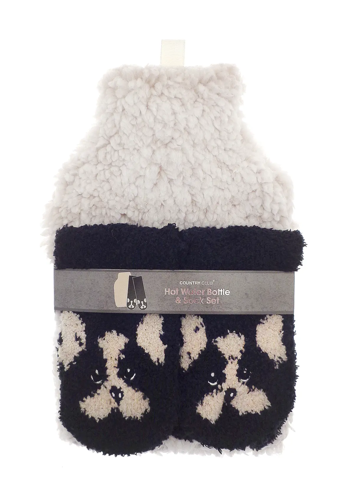 Supersoft Dog Design Hot Water Bottle and Socks Cosy Gift Set