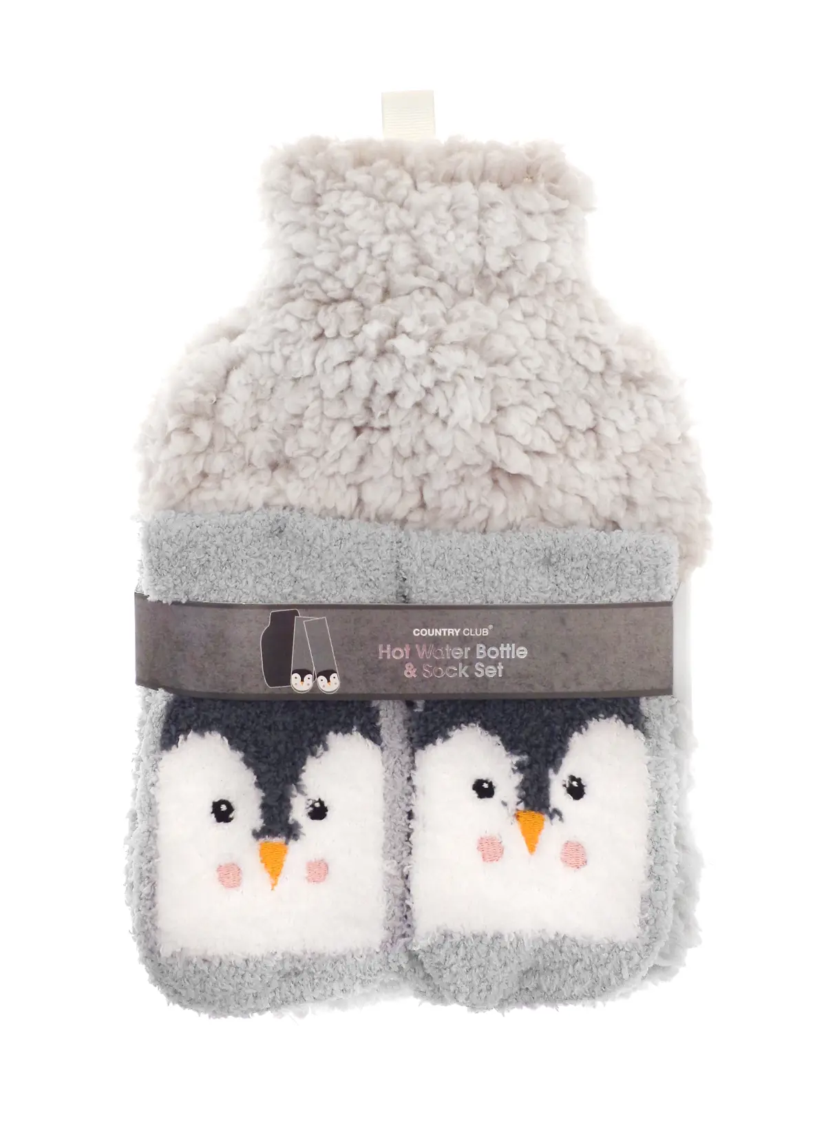 Supersoft Penguin Design Hot Water Bottle and Socks Cosy Gift Set