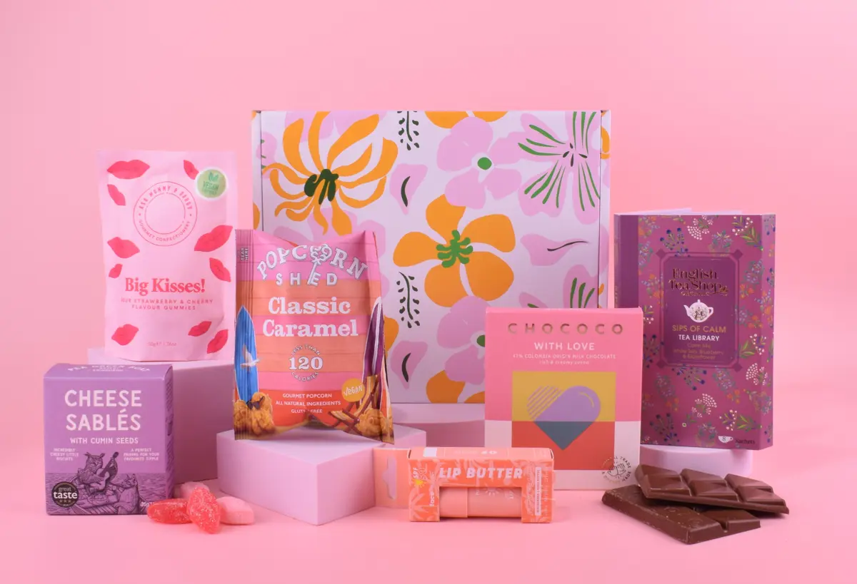 From caramel popcorn and artisan cheese sables to fruity gummies, chocolate, and a nourishing lip butter, every item has been chosen to delight the senses. Paired with calming tea and presented in a gift box, it’s a warm, thoughtful gift that’s ready to enjoy straight away.