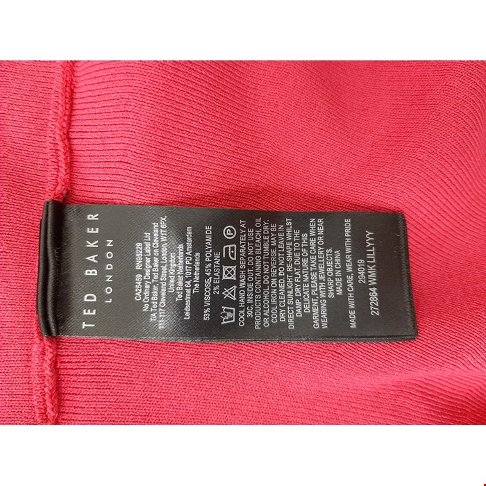 Bring a touch of feminine elegance to your wardrobe with this Ted Baker Pink Scallop Hem Peplum Top, crafted from a soft viscose mix. Designed with a flattering peplum silhouette and delicate scallop hem, it’s perfect for pairing with skirts or tailored trousers for a chic, versatile look.