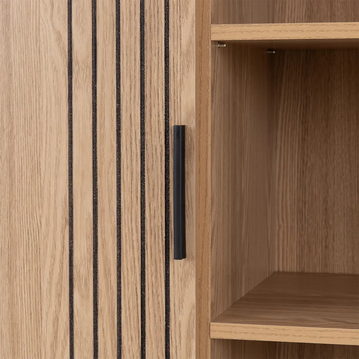 Add a stylish and practical storage solution to your home with this elegant tall shelving and cabinet unit. Finished in a warm natural oak effect, this piece combines contemporary design with everyday functionality. The clean-lined silhouette is enhanced by vertical groove detailing on the single door, creating a modern focal point that suits a variety of interiors. Featuring five open shelves, it offers ample space for displaying books, decorative accents, or greenery, while the enclosed cabinet section provides discreet storage for items you prefer to keep out of sight. Elevated on sleek black tapered legs, this unit delivers stability and a touch of contrast that elevates its overall look. Perfect for living rooms, home offices, or bedrooms, its slim profile makes it an ideal choice for maximizing storage without compromising floor space. Crafted from durable engineered wood with a realistic oak finish, this piece promises lasting quality and timeless appeal. Supplied flat-packed for convenience, it includes clear, concise assembly instructions for a stress-free setup.