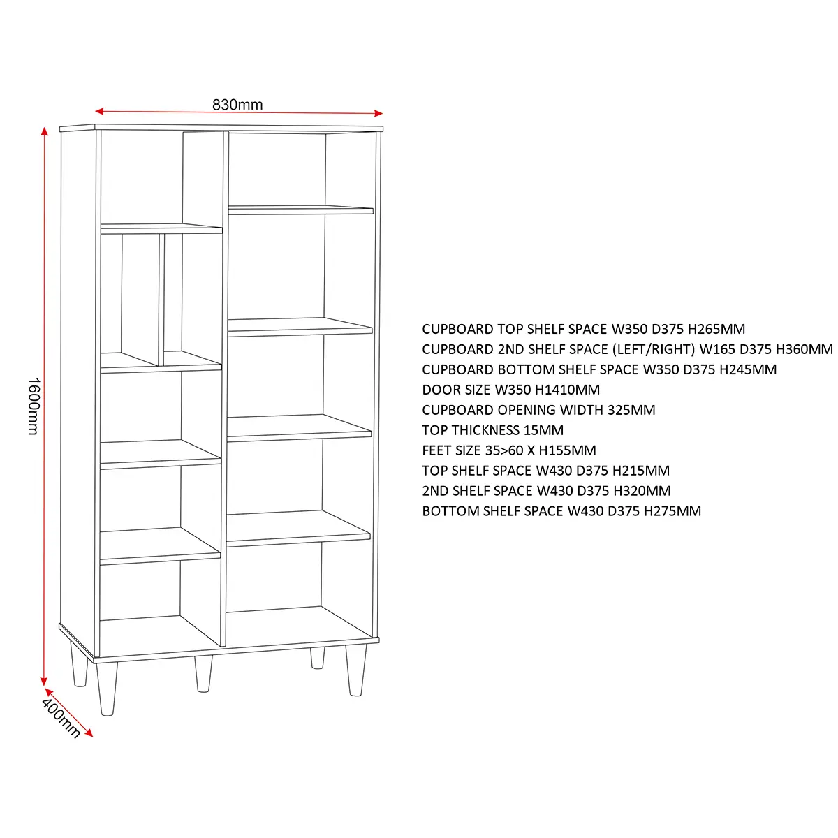 Assembled Dimensions: Width: 83 x Depth: 40 x Height: 160 (cm)
