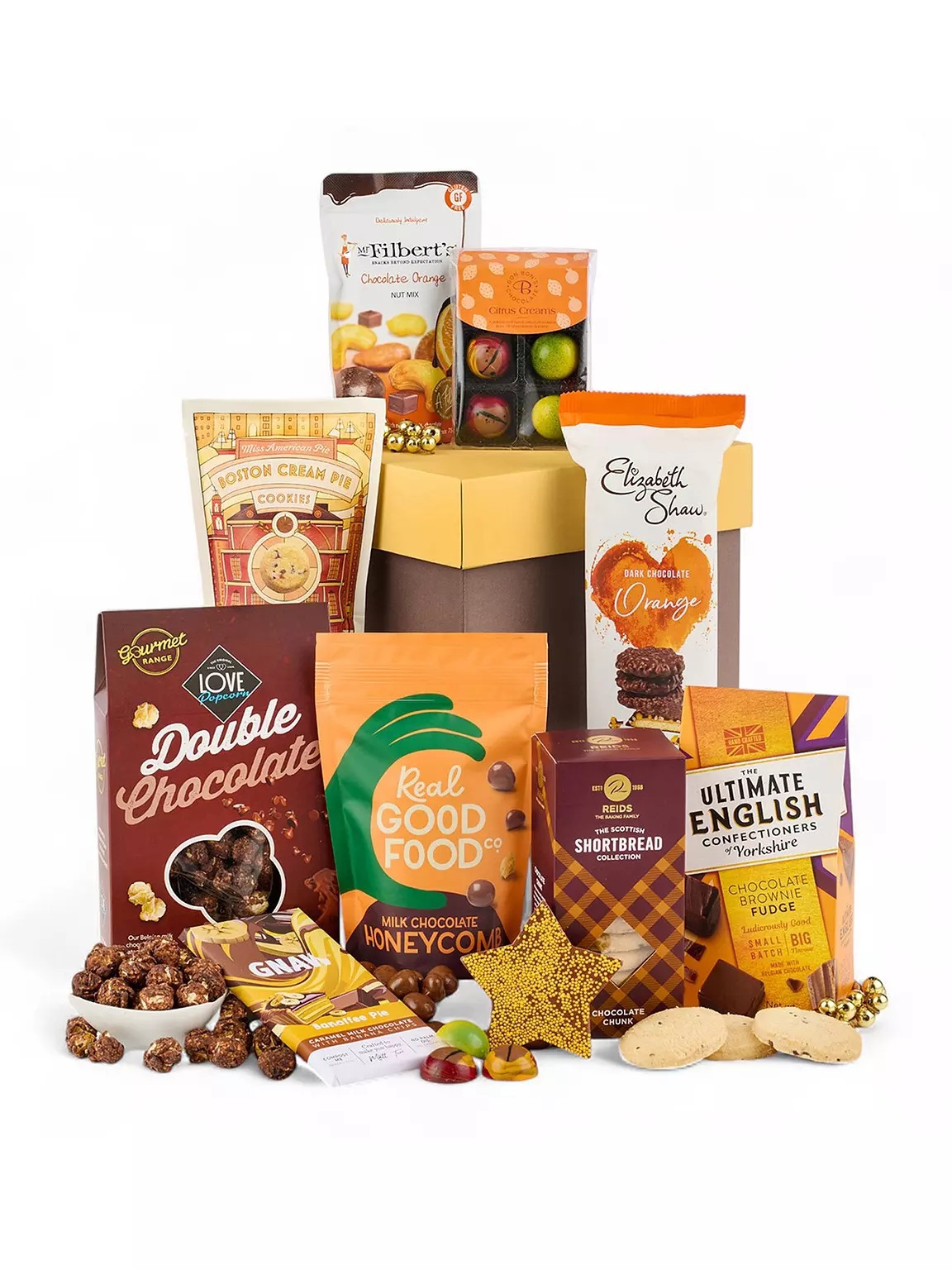 The Choco Tower Gift Box Hamper is a chocolate lover’s dream, stacked high with irresistible sweet treats. From rich biscuits and creamy fudge to indulgent popcorn and artisan chocolates, every layer is a delightful surprise waiting to be unwrapped. Perfect for sharing with family, gifting to friends, or keeping all to yourself for cosy winter evenings.