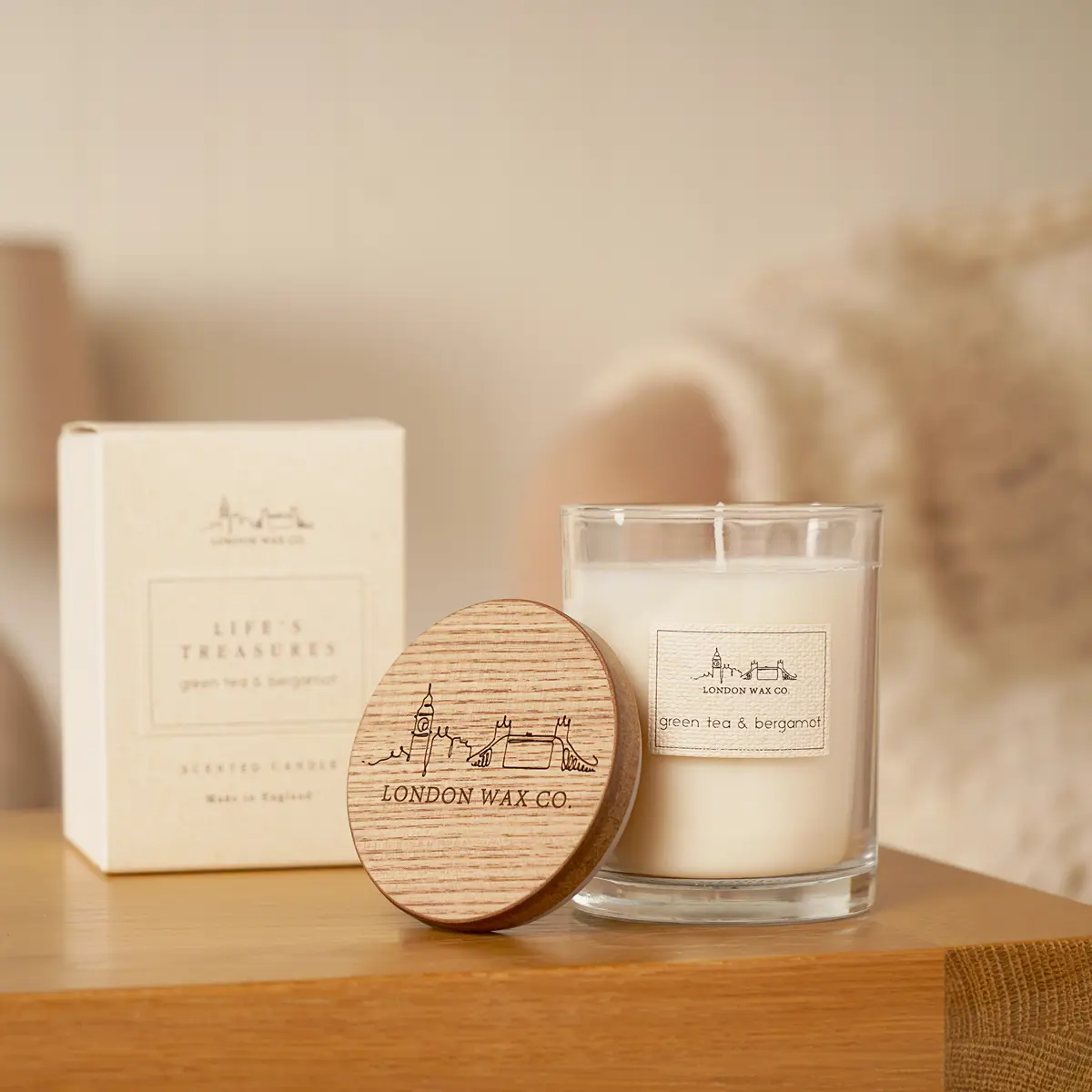 The London Wax Company is a premium collection of candles and home fragrances crafted in the UK to bring elegance and warmth to any space. Unwind with the calming scent of the Green Tea & Bergamot Lidded Candle, a refreshing fragrance that combines peace and style in one beautiful design.
