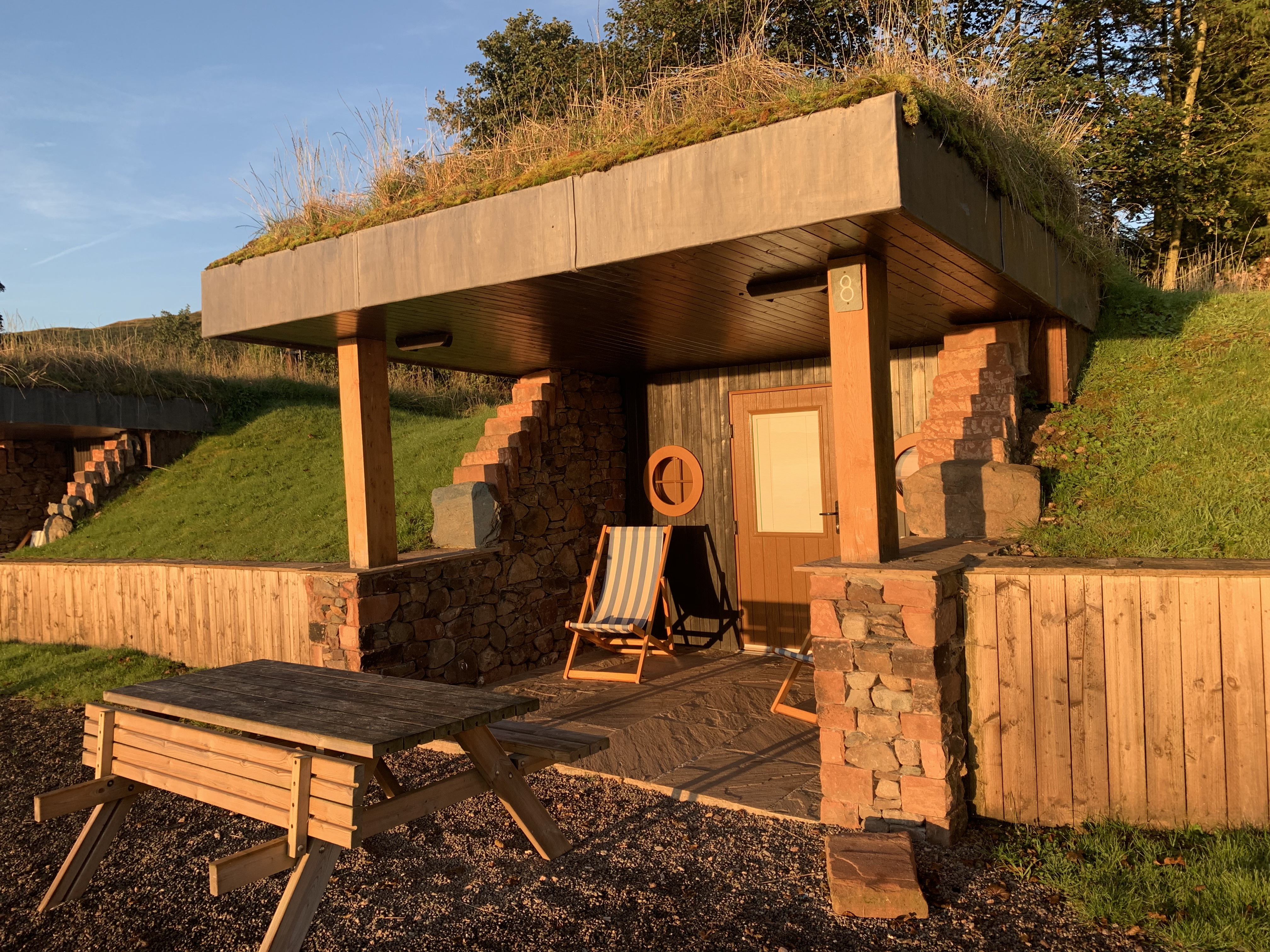 Inside, your spacious burrow has everything you need, including a soft-sleep ledge, bathroom, fridge, microwave, electric points and even USB chargers. Outside, relax at your private picnic table or take in the scenery from your covered viewing area with deck chairs. The site itself is brimming with extras like a zero-waste shop, a cosy 16th-century bar, a wood-fired pizza oven, a games room, free Wi-Fi and modern showers, making it a truly unique countryside escape.