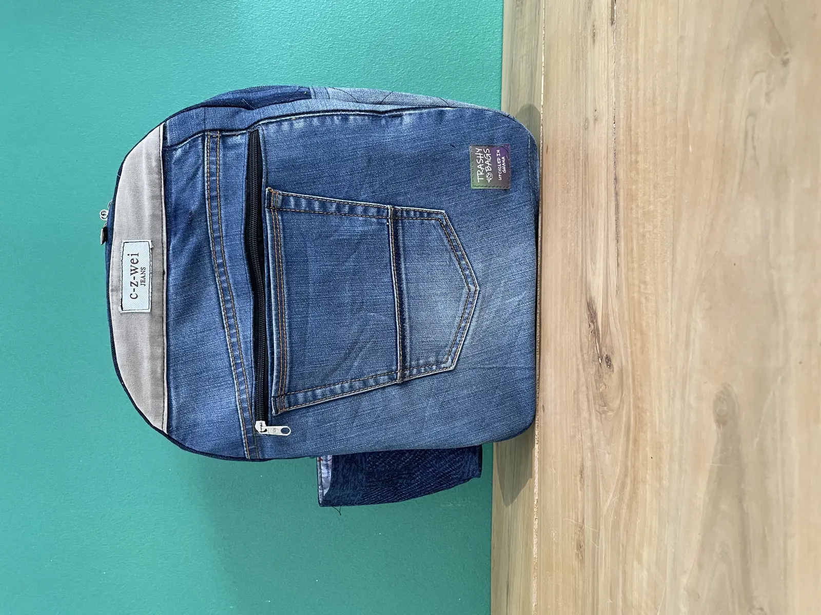 Introducing the Trashy Bag Rucksack—a stylish, sustainable accessory crafted from upcycled denim jeans and discarded plastic waste. The Trashy Bag Denim Rucksack combines sustainability with style, crafted from upcycled denim jeans that retain their original pockets, giving each bag a unique touch of character. Lined with repurposed plastic waste, these bags showcase our commitment to reducing waste and embracing creativity. Each piece is one-of-a-kind, featuring distinct denim patterns and vibrant plastic linings, perfect for individuals who value both fashion and environmental responsibility.