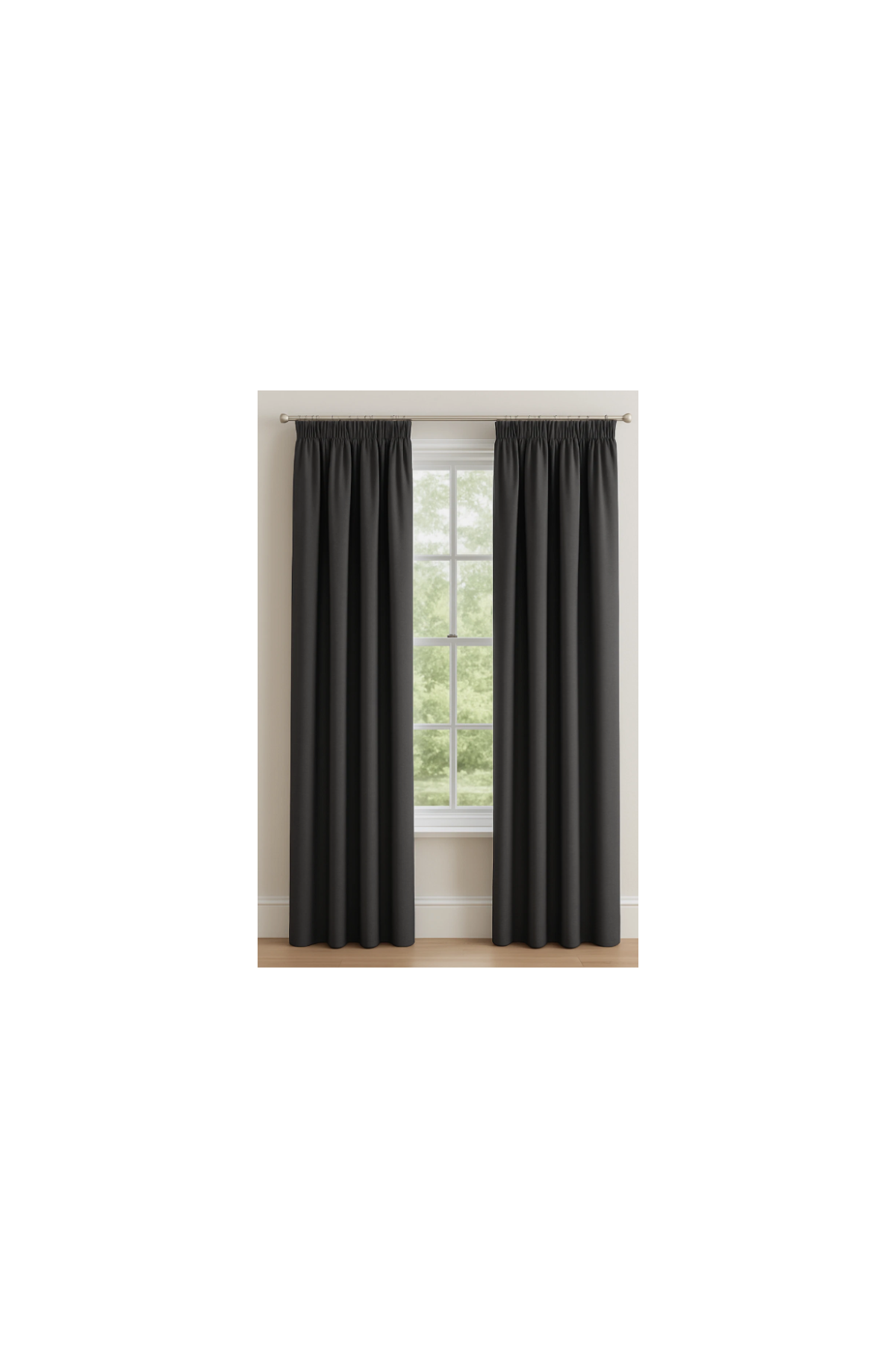 Create a restful, stylish space with these Charcoal Pencil Pleat Blackout Curtains. Their rich charcoal tone and smooth finish bring a touch of sophistication to any room, while the blackout design ensures peace, privacy, and comfort day or night.