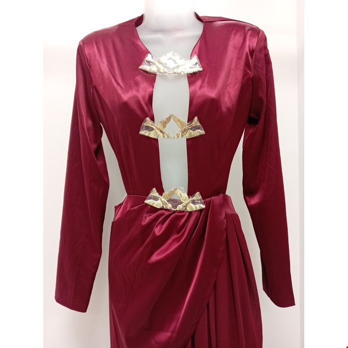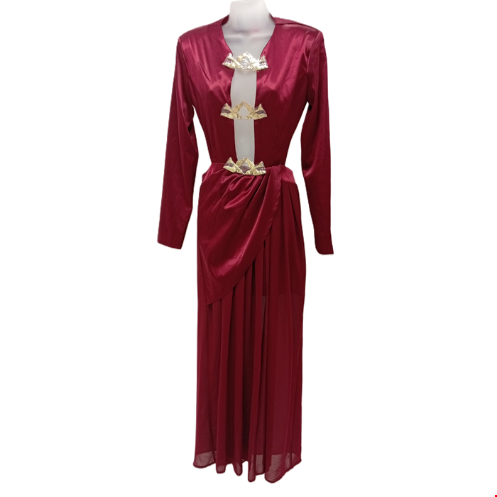 Step into elegance with this vintage evening dress, a truly unique piece featuring delicate dove clasps that add a touch of sophistication. Designed with a timeless silhouette, this dress is perfect for formal occasions, vintage lovers, or those looking for a one-of-a-kind addition to their wardrobe.