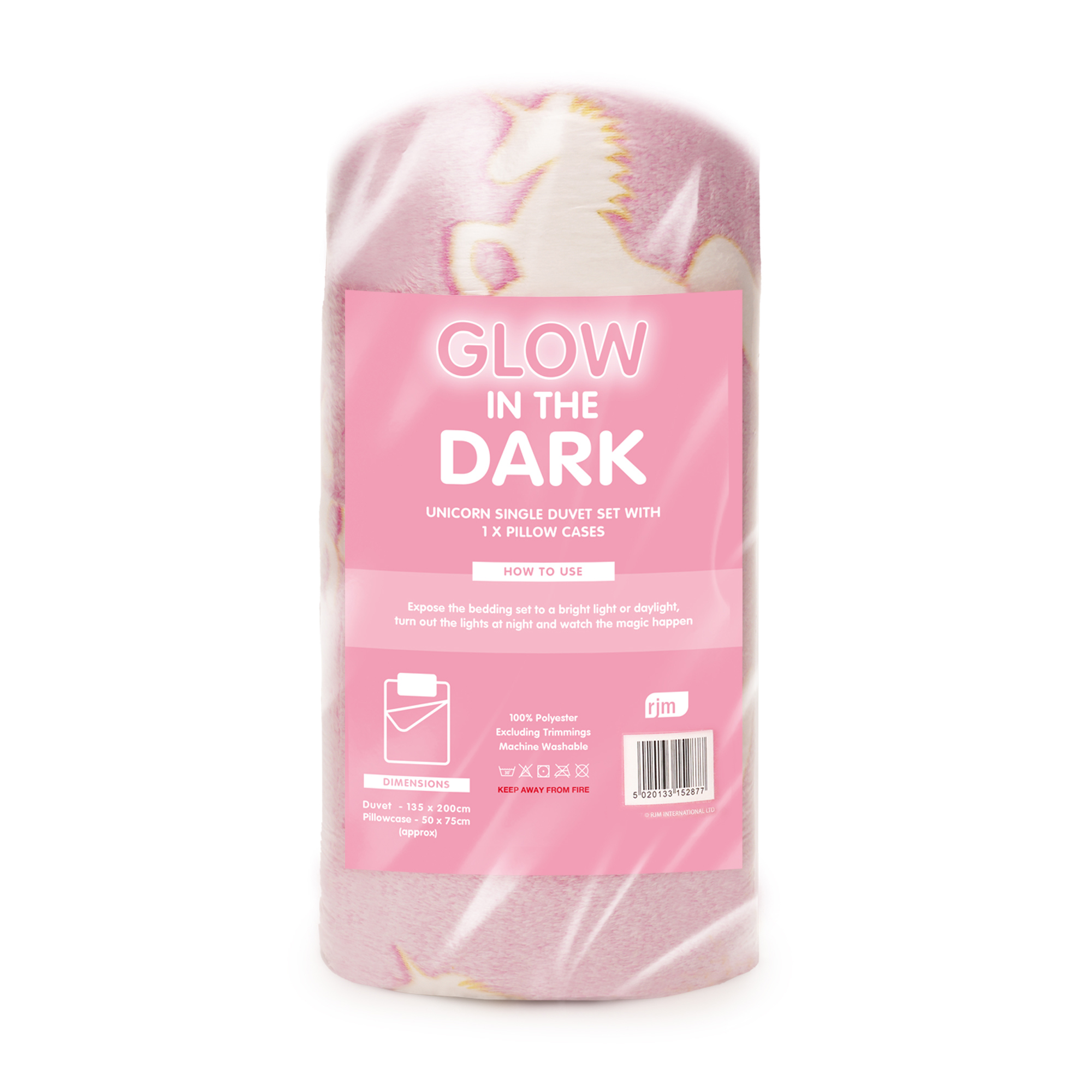 Unicorn Design Glow in the Dark Children's Single Duvet Set