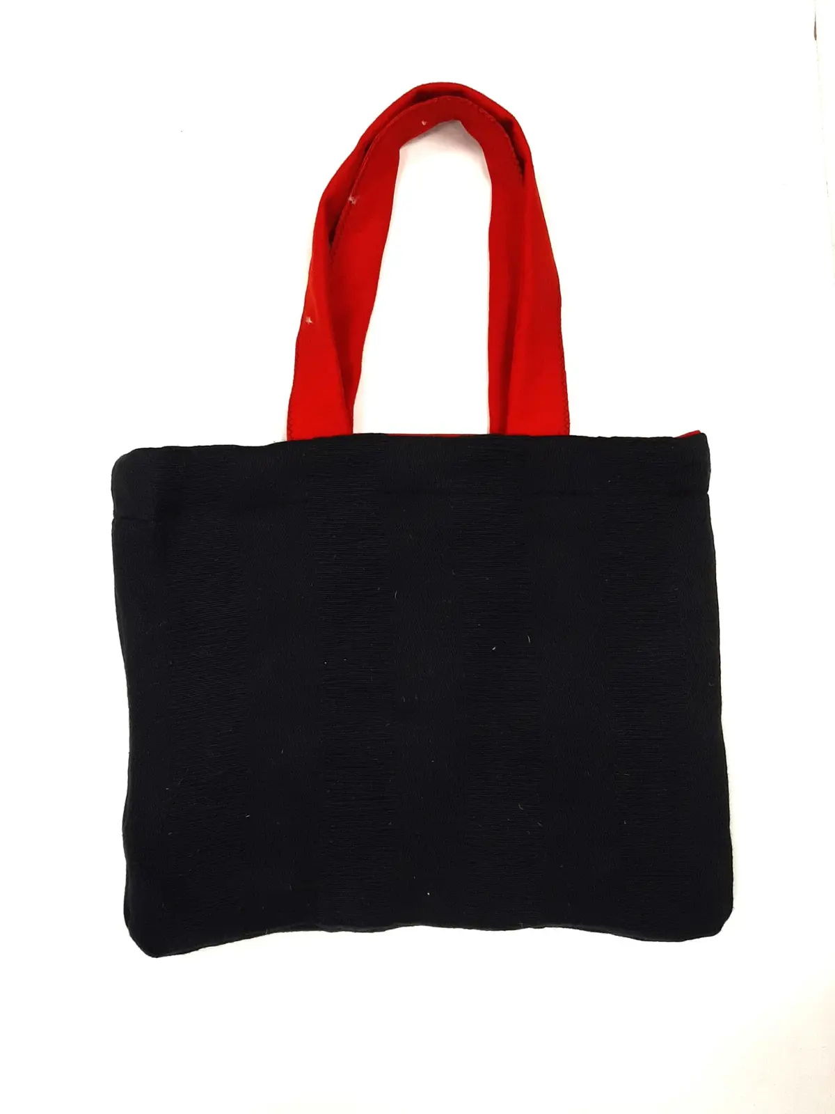Upcycled Black and Red Tote Bag With Heart Designed Pre-Loved Refashioned