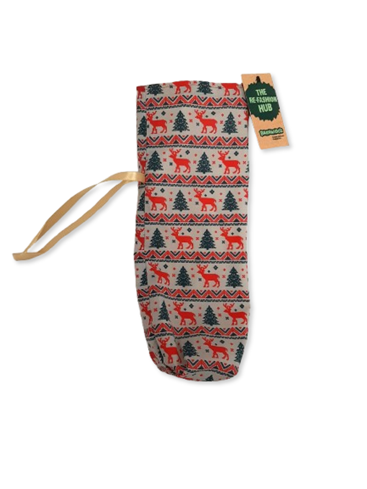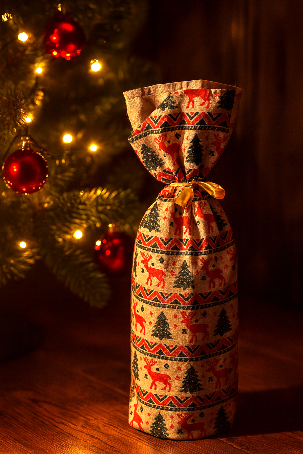 A festive, reusable bottle bag that adds charm, sustainability, and a cosy winter feel to your holiday gifting.