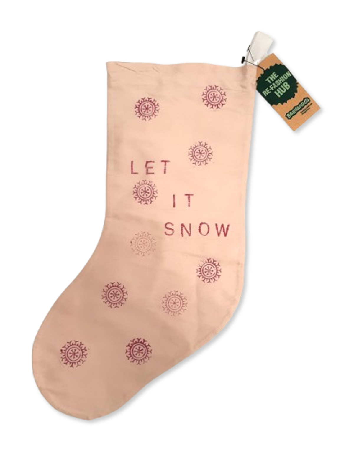 Upcycled Handmade Pink Let It Snow Patterned Festive Christmas Stocking Pre-Loved Re-Fashioned