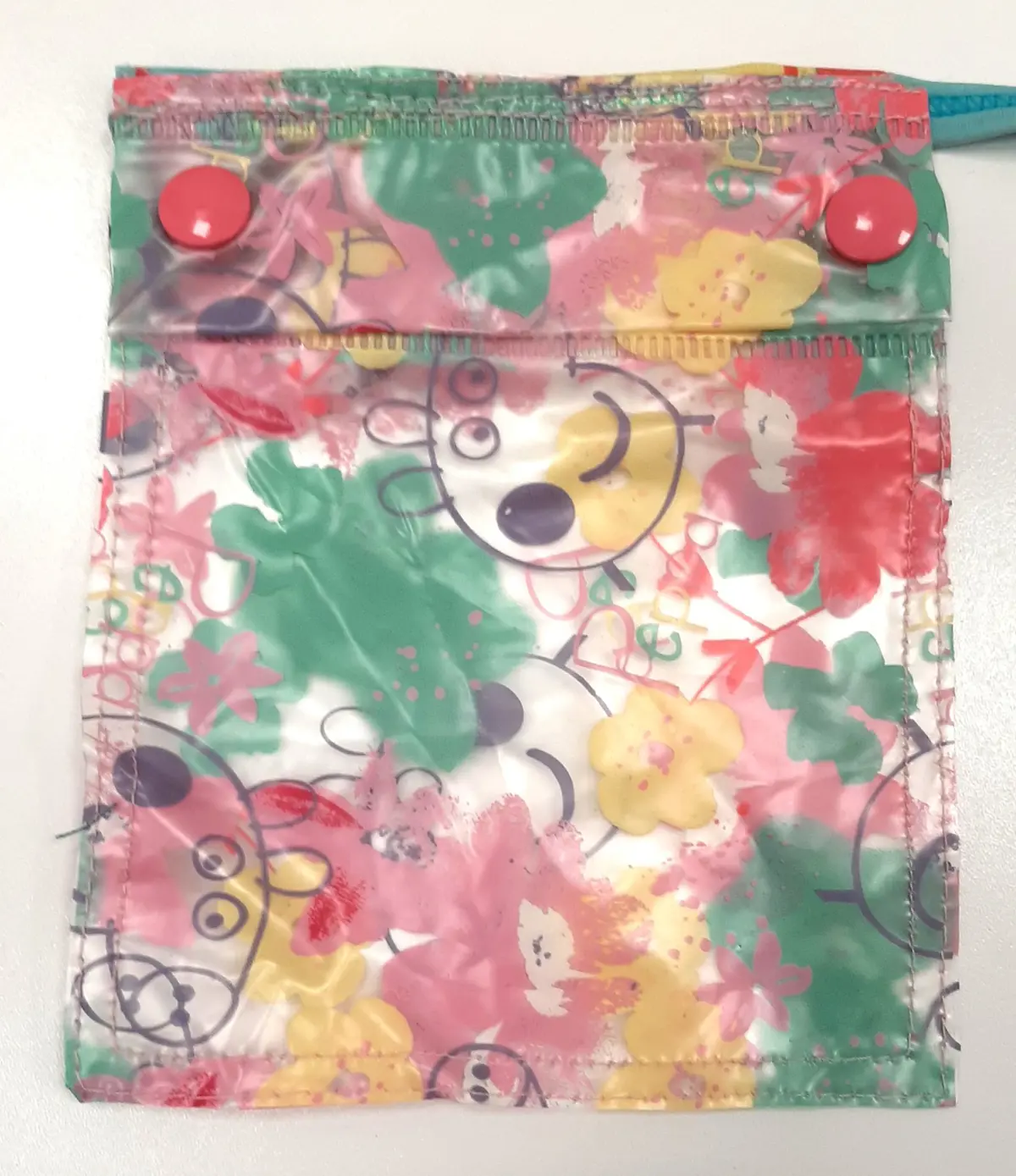 • Upcycled from an old raincoat for waterproof practicality.