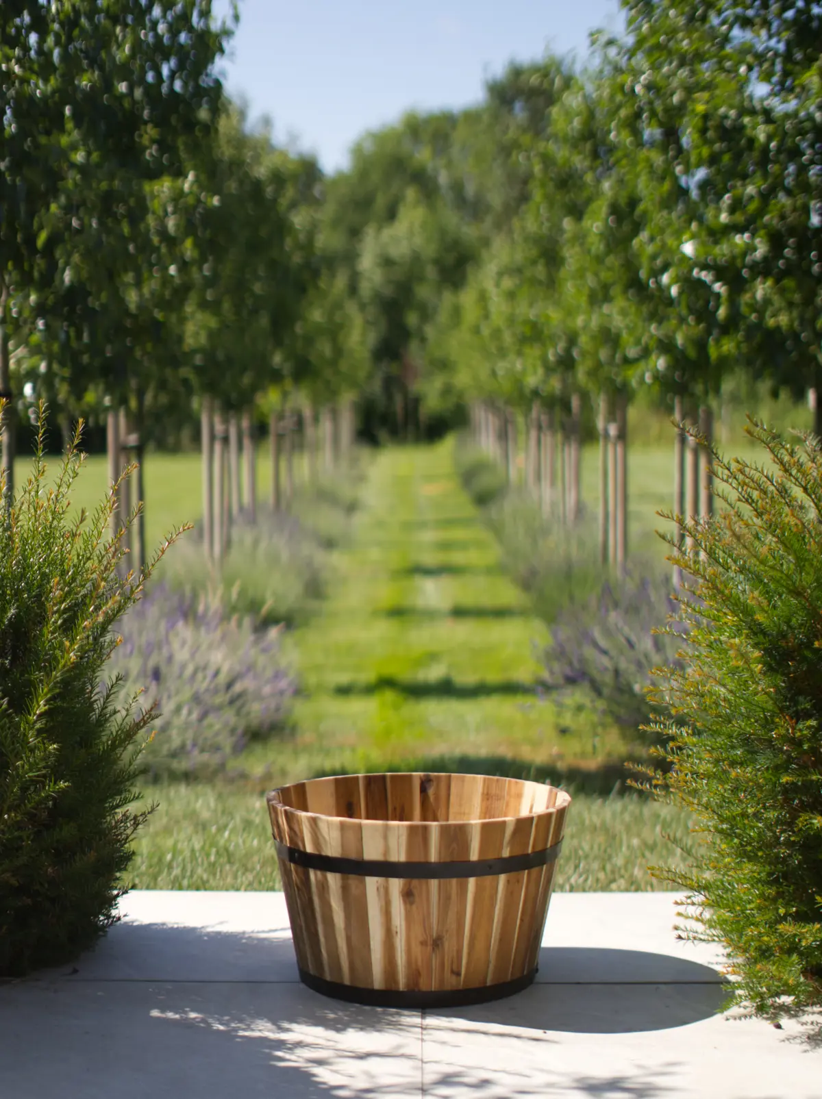 • Large 18" wooden barrel planter