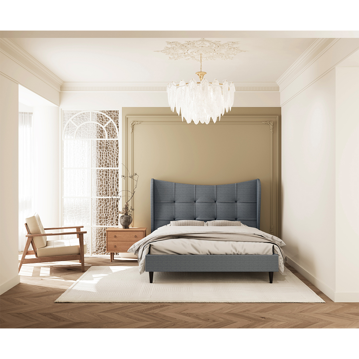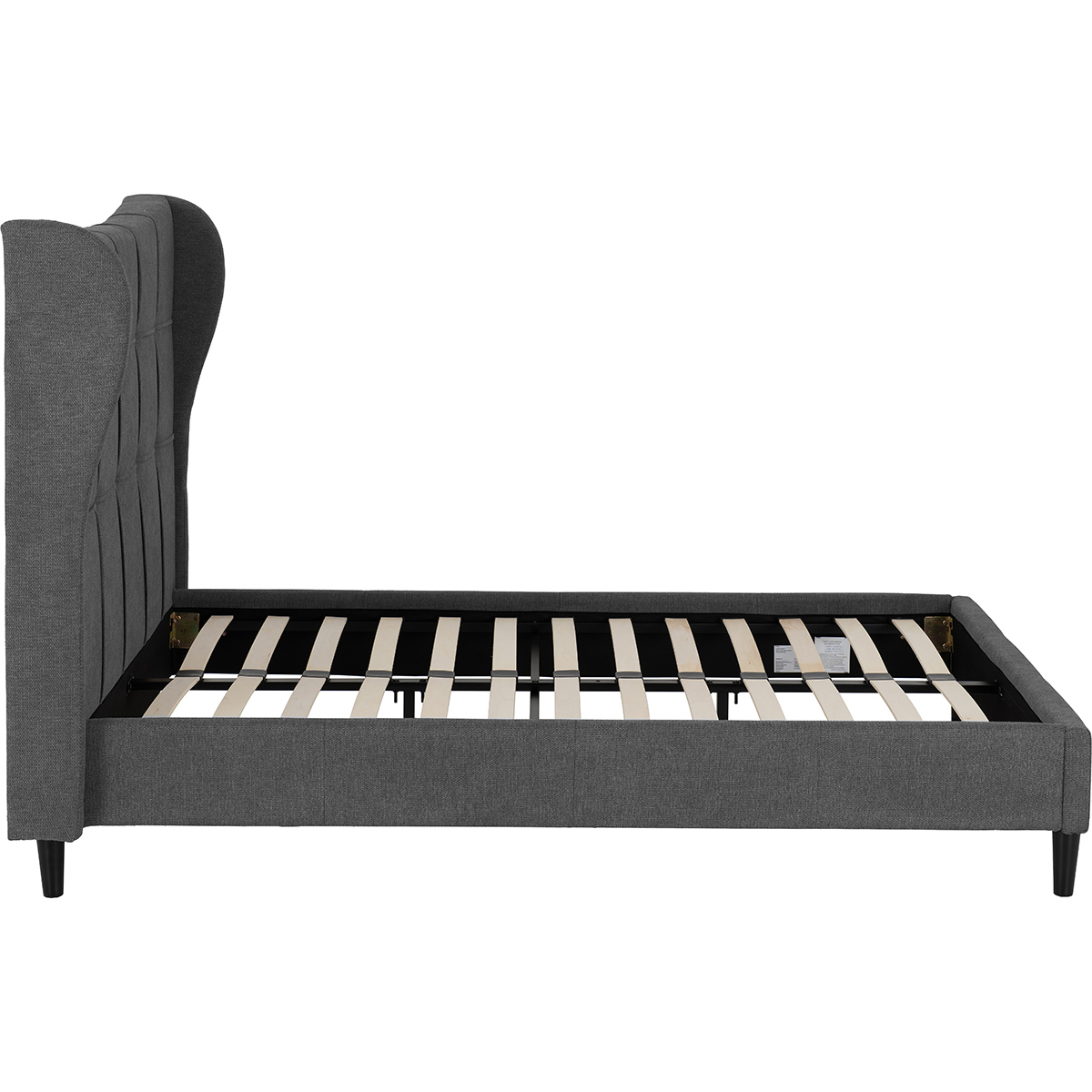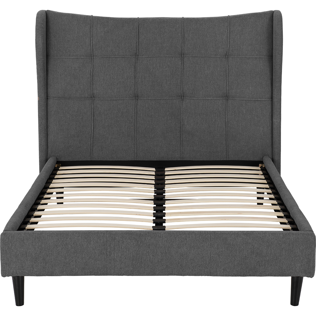 Available in Double & King Sizes: Perfectly suited for both standard and more spacious bedrooms, offering ample room to stretch out and relax in style. Choice of Colours: Grey or Brown Fabric Upholstery: Upholstered in a soft, durable woven fabric available in two versatile shades—classic grey for a cool, modern look, or rich brown for a warmer, more traditional tone. Both finishes are easy to coordinate with a range of bedroom colour schemes and accessories. Striking Statement Headboard: Features a tall, winged headboard with vertical and horizontal panel stitching, creating a grid-style design that adds depth and character. The winged edges provide a sense of enclosure and comfort, making it perfect for leaning back with a book or while watching TV in bed. Sprung Slatted Base for Enhanced Comfort: The curved, flexible wooden slats adjust to your body weight and movement, offering superior mattress support, improved airflow, and increased durability—helping extend the life of your mattress and enhancing overall sleep quality.