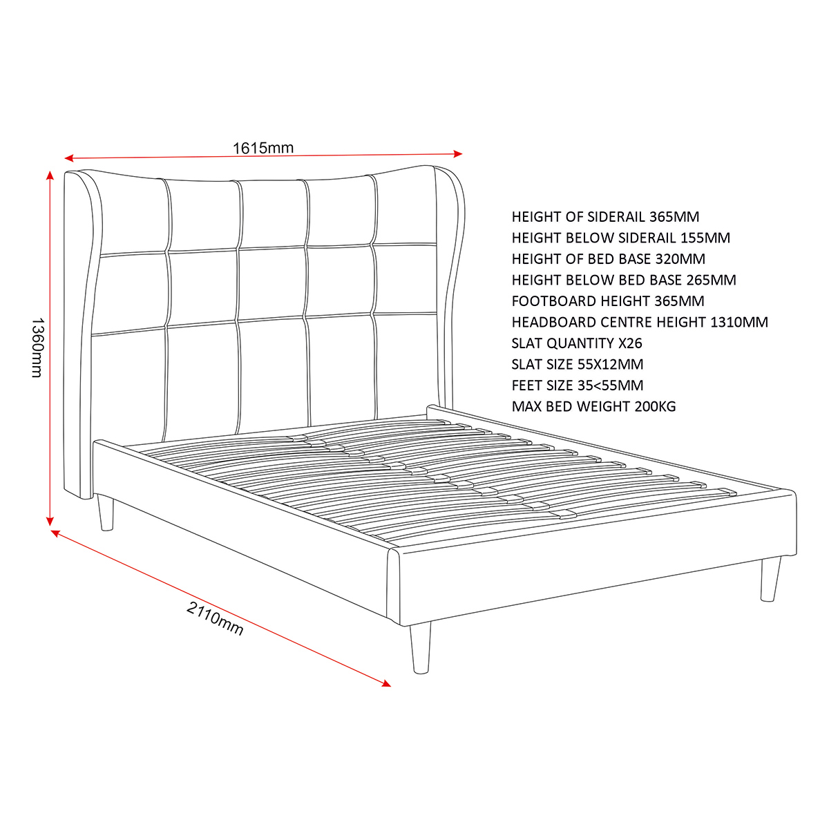 Assembled Dimensions: Width: 161.5 x Depth: 211 x Height: 136 (cm)