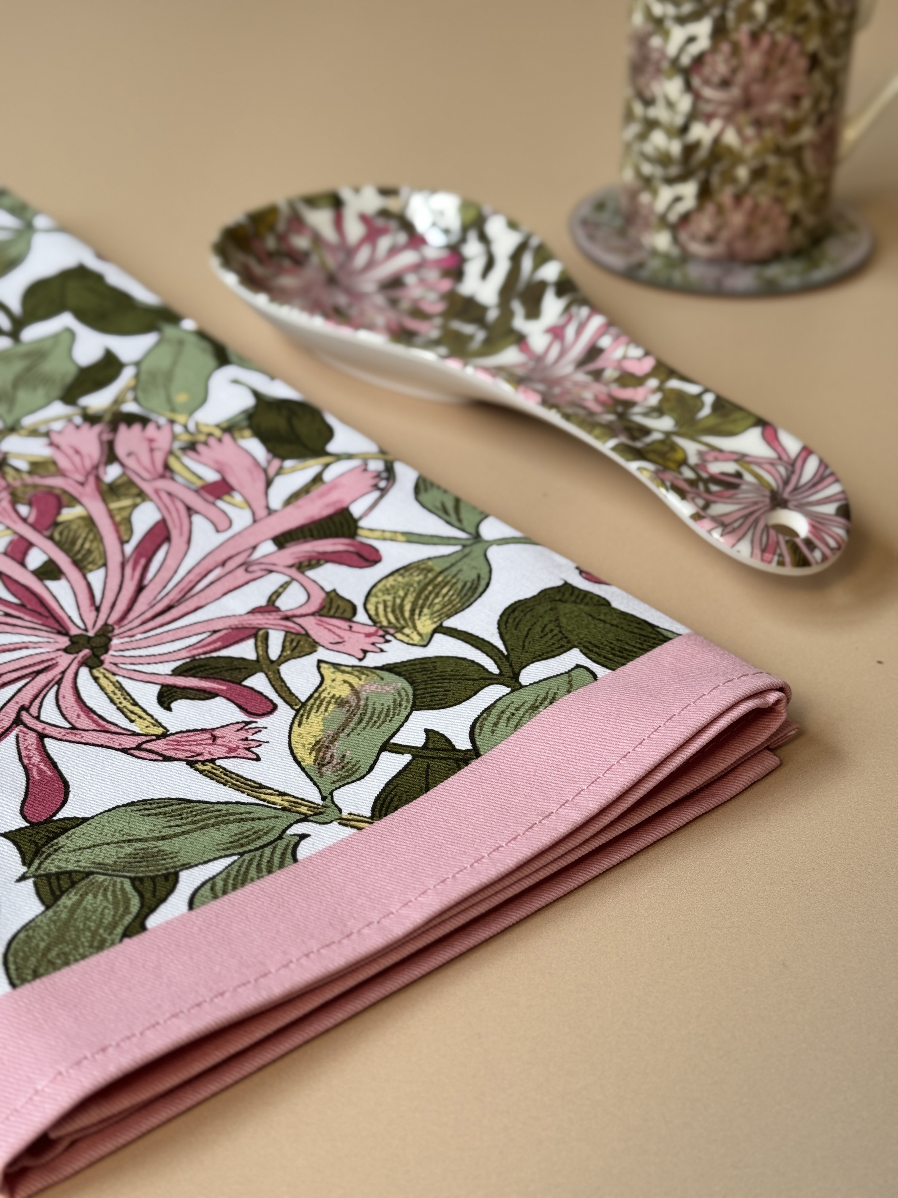 Introducing our new and exclusive William Morris range! The timeless Honeysuckle print has been beautifully reimagined in a unique pink and green colourway, designed just for Barnardo’s. This melamine spoon rest featuring the new design is the perfect accessory for your kitchen tea station. Handwash only to keep the design looking fresh.