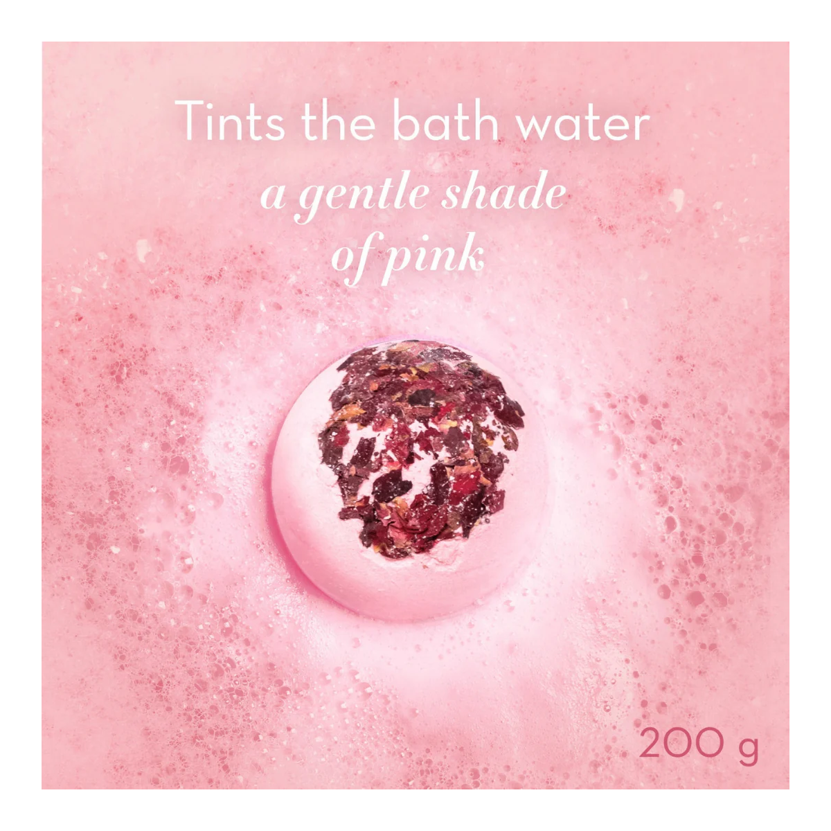 Turn bath time into a moment of nature-inspired calm with this luxurious pink bath bomb, delicately fragranced and sprinkled with real rose petals.