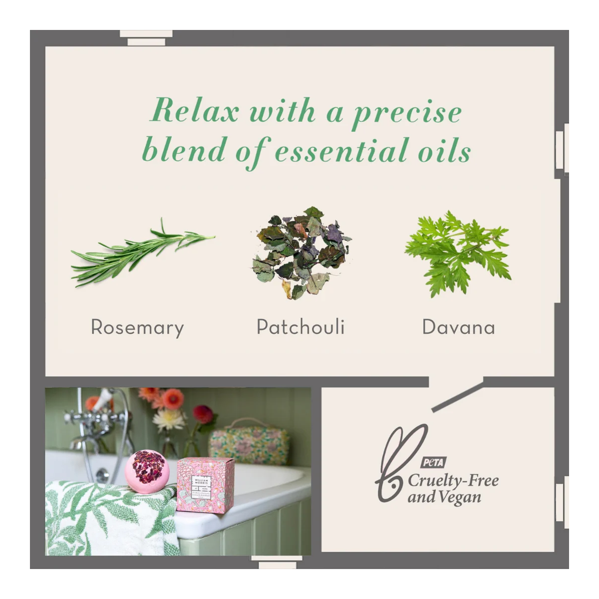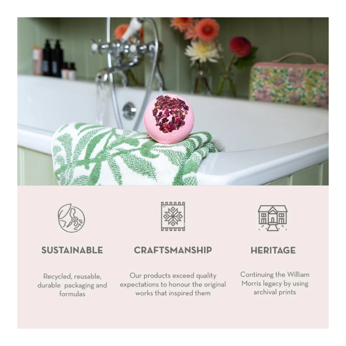 William Morris Modern Homemaker Rose Petal Vegan Bath 200g Bomb Gift For Her