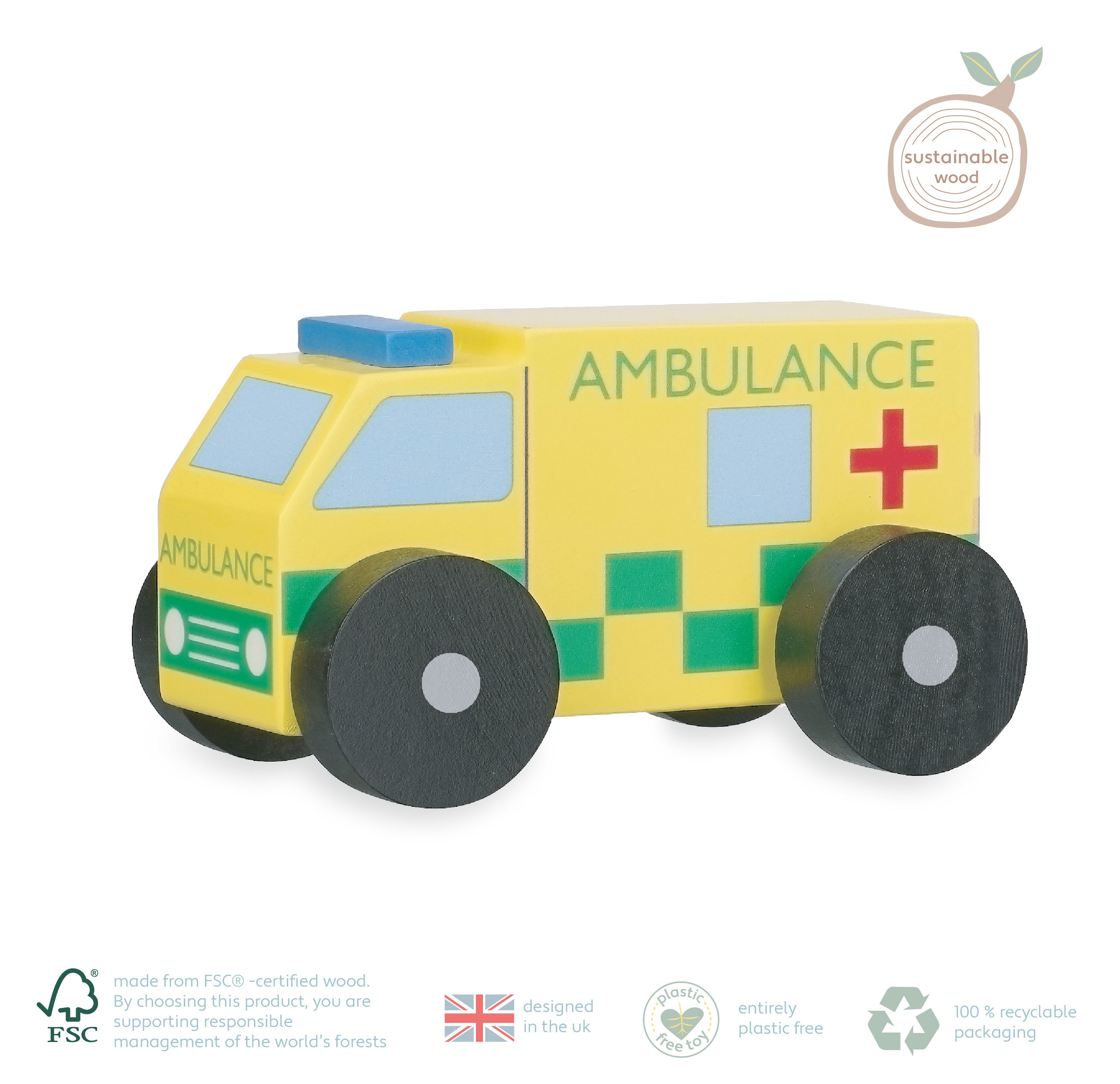 This product is made from sustainable wood. By choosing this product, you are supporting responsible management of the world's forests. This product comes in beautifully designed, fully recyclable packaging. Chunky wooden ambulance toy