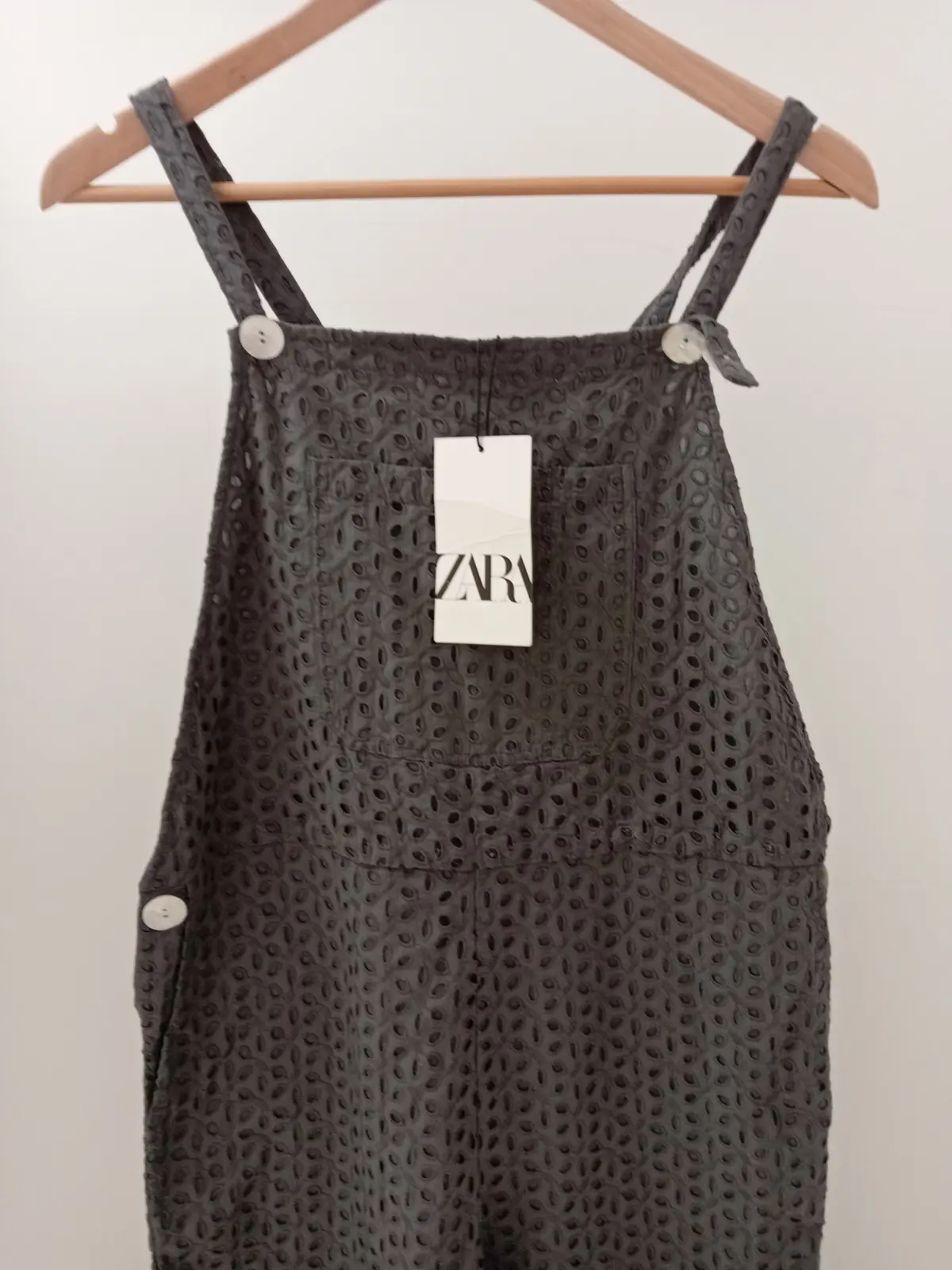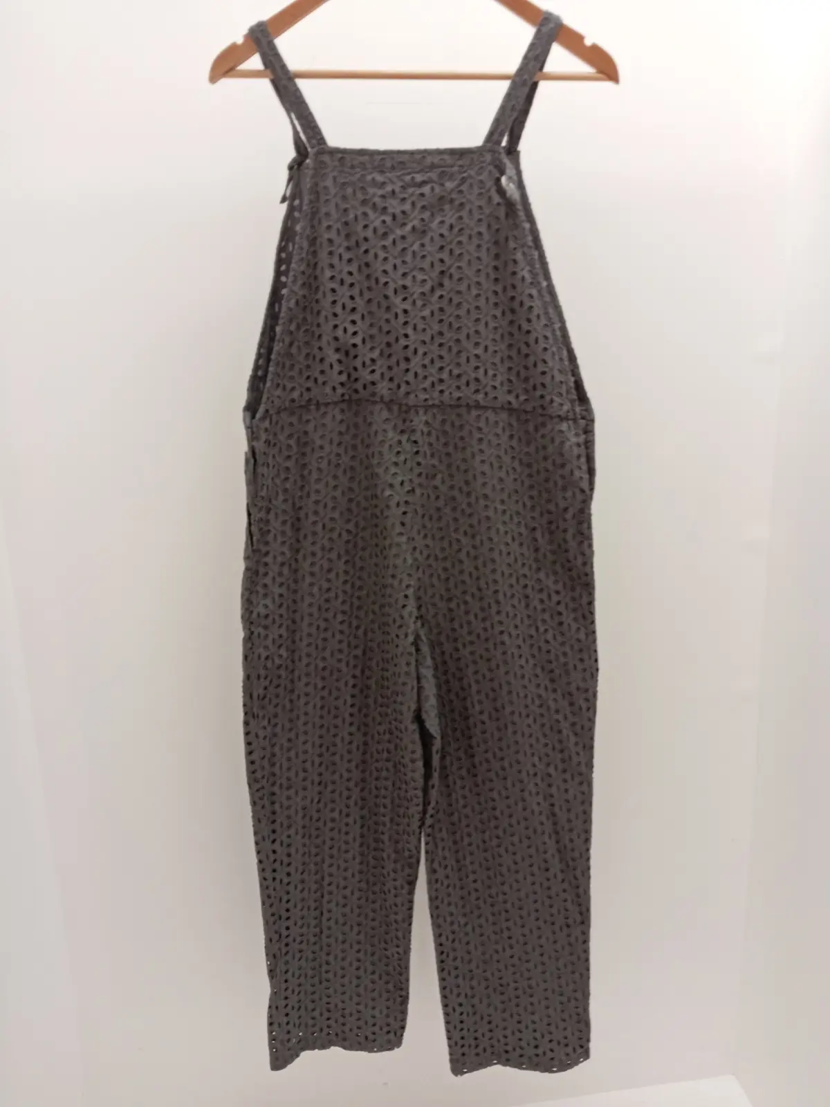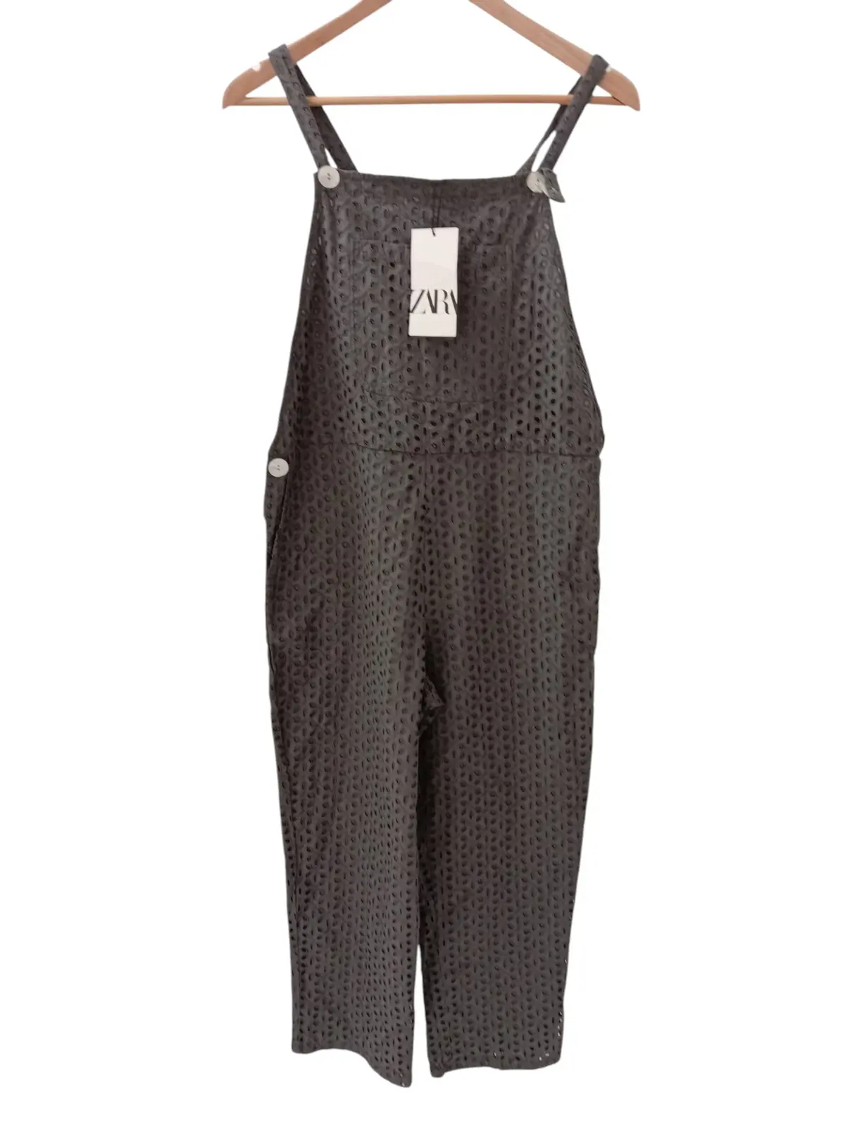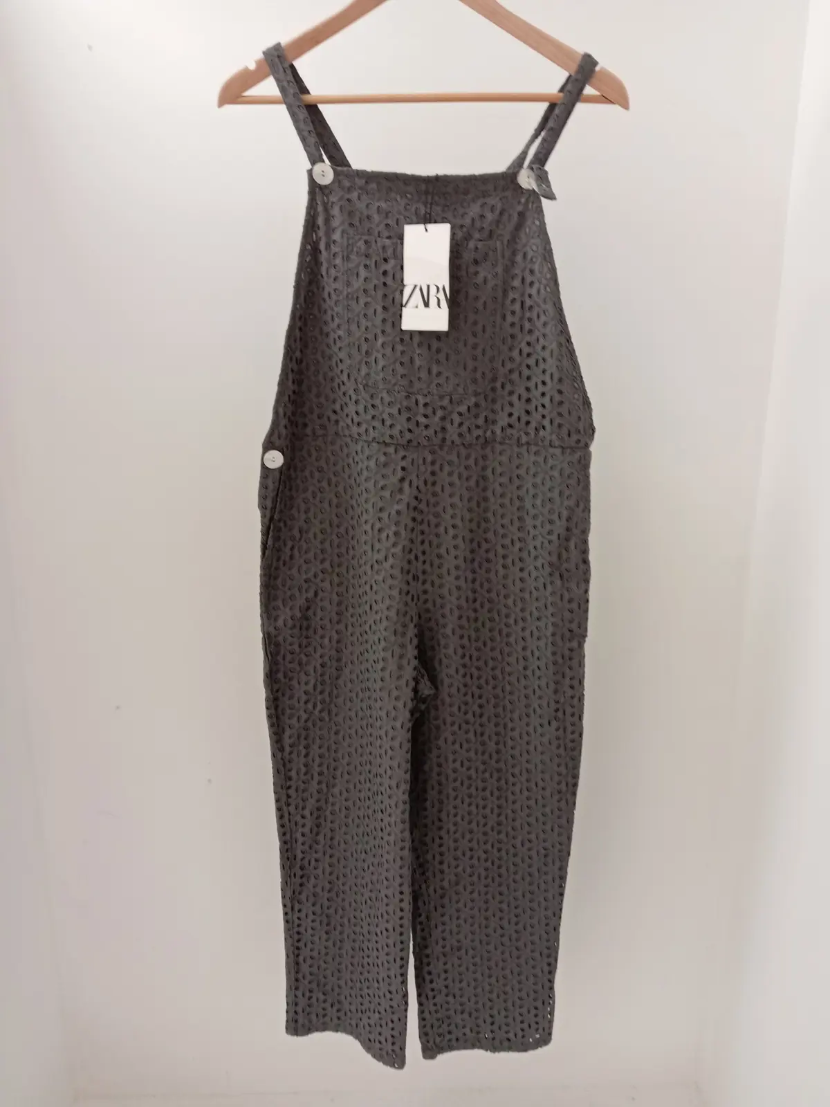 Elevate your wardrobe with this sophisticated grey sleeveless jumpsuit from ZARA, designed to seamlessly blend comfort with contemporary style. Tailored for a UK Size Small, this pre-loved piece remains unused and is in great condition, offering a fresh addition to your fashion collection.