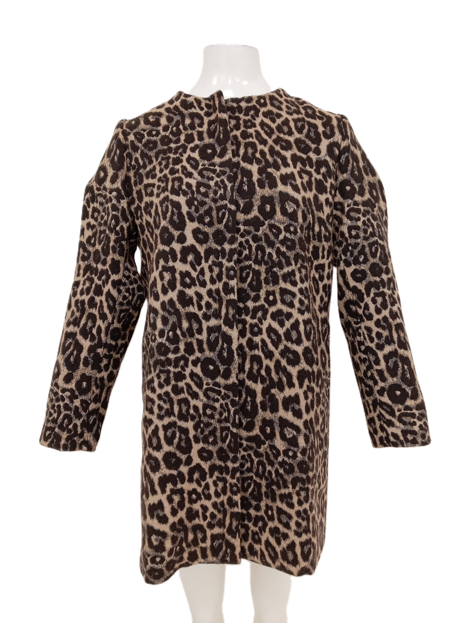 ZARA Ladies UK Size Small Leopard Print Zip Up Over Coat Pre-Loved