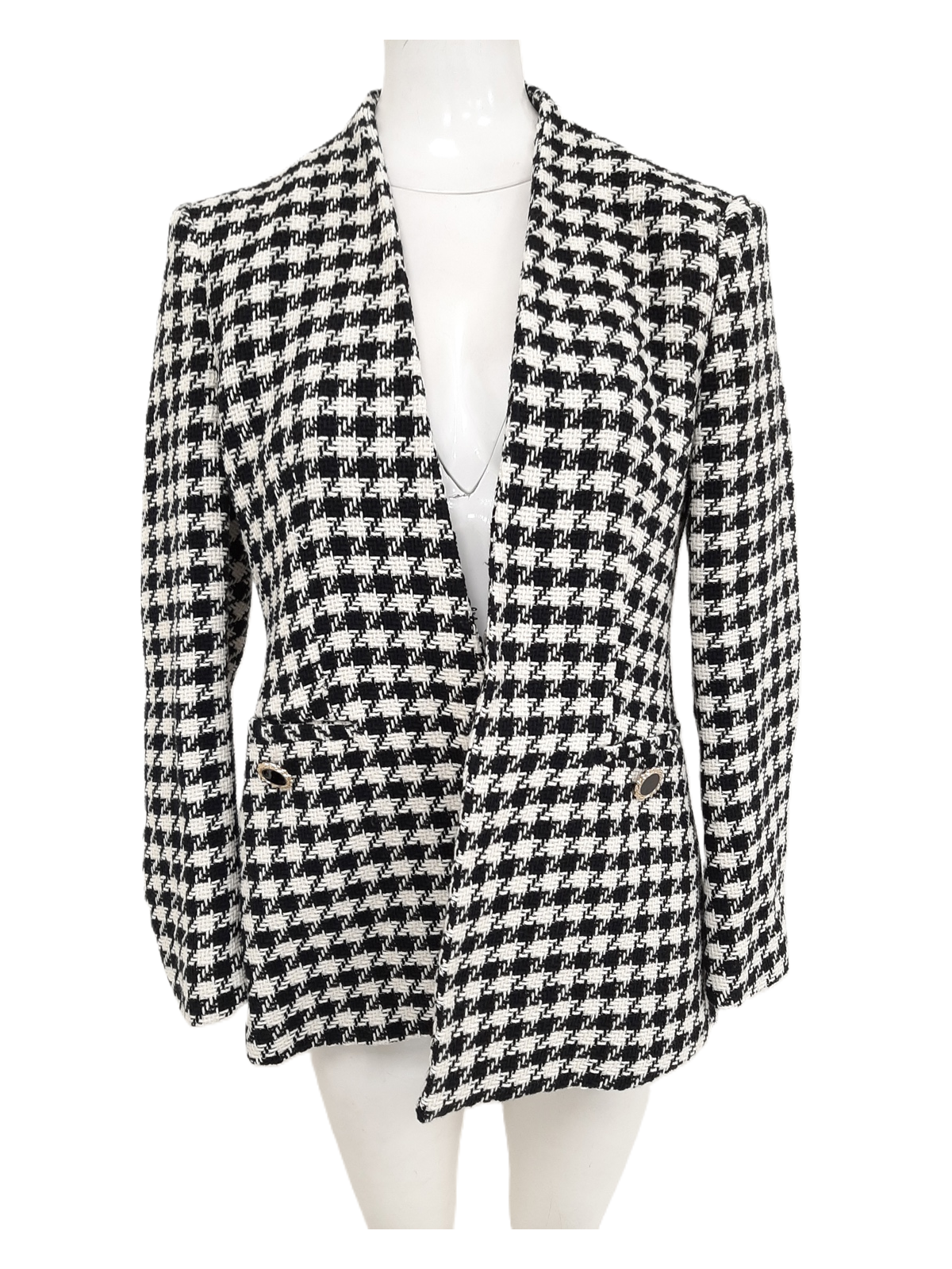 ZARA Women's Houndstooth Patterned Blazer Jacket – Black & White – Size XL – Pre-Loved Condition