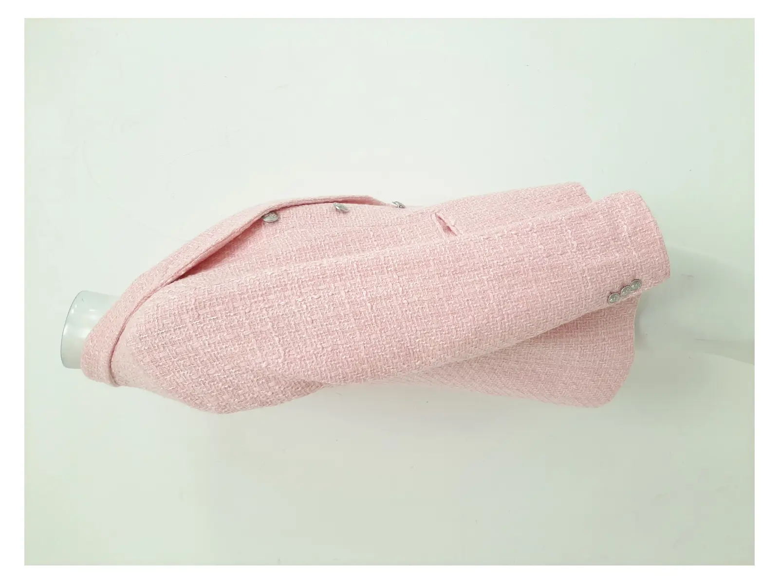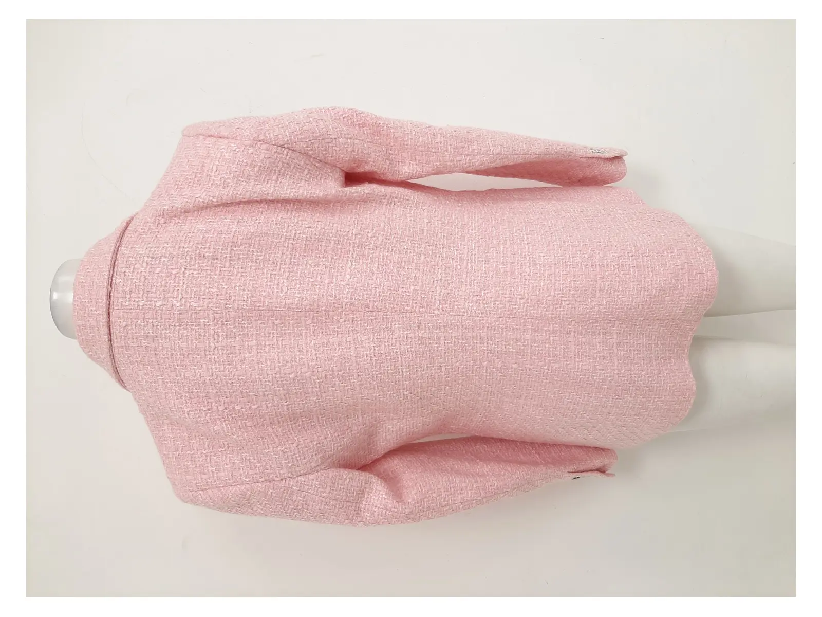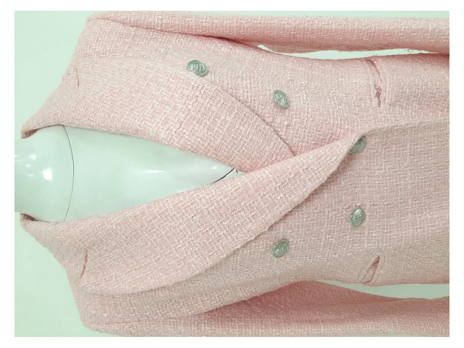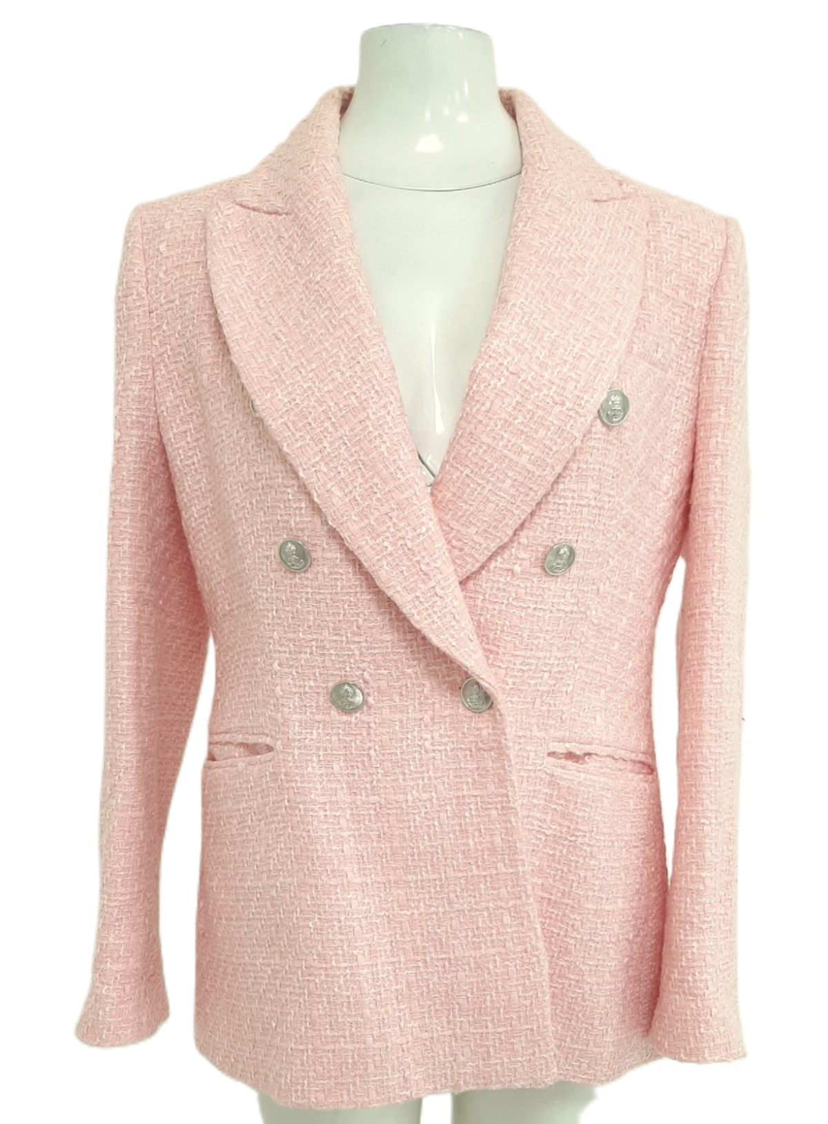 ZARA Women's Pink Woven Boucle Textured Double Breasted Structured Blazer Jacket Size UK L Pre-Loved