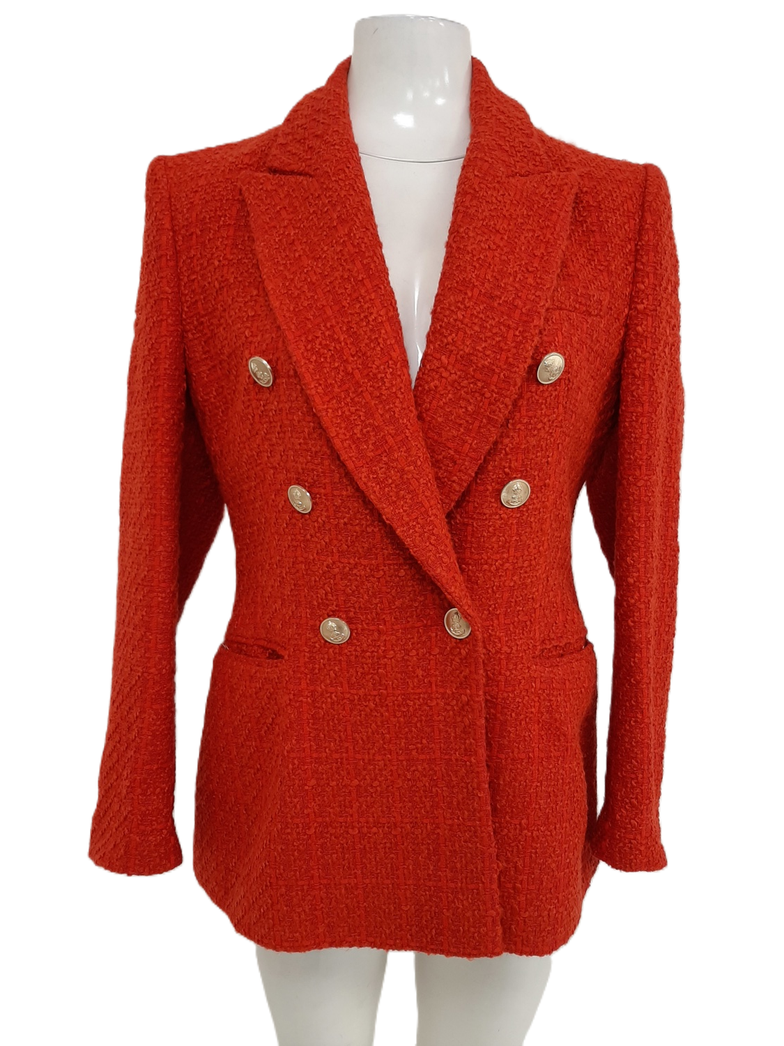 Make a bold statement with this ZARA Red Double-Breasted Structured Blazer Jacket, designed for a tailored, sophisticated look with a striking pop of colour. Perfect for smart-casual styling, office wear, or evening outfits, this blazer adds instant polish to any ensemble.